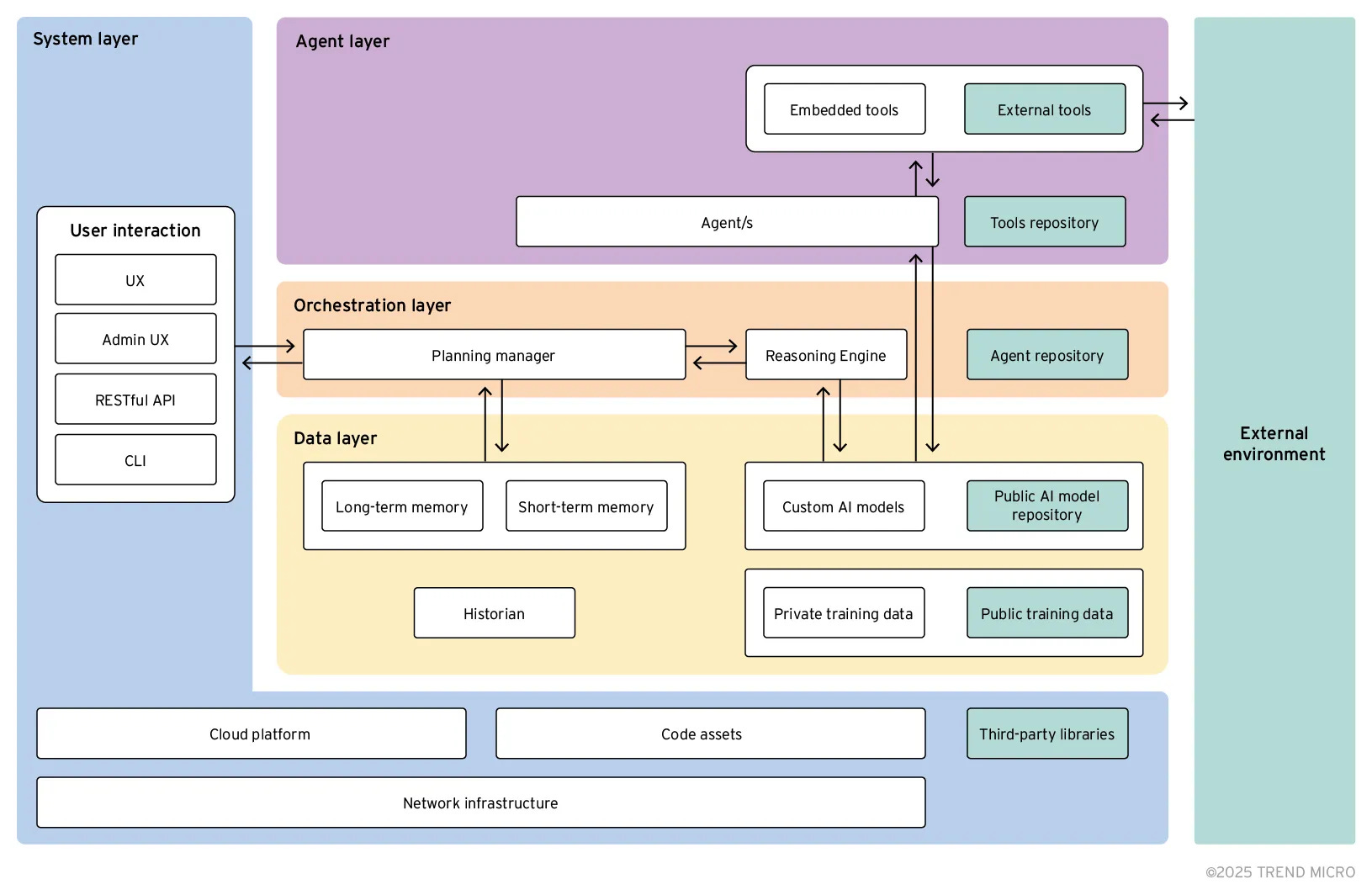 Modern agentic AI systems organize around four distinct layers, each with specific responsibilities. These layers, Data, Agent, Orchestration, and System, aren’t just conceptual boundaries, they’re explicit architectural layers with defined interfaces between them.
